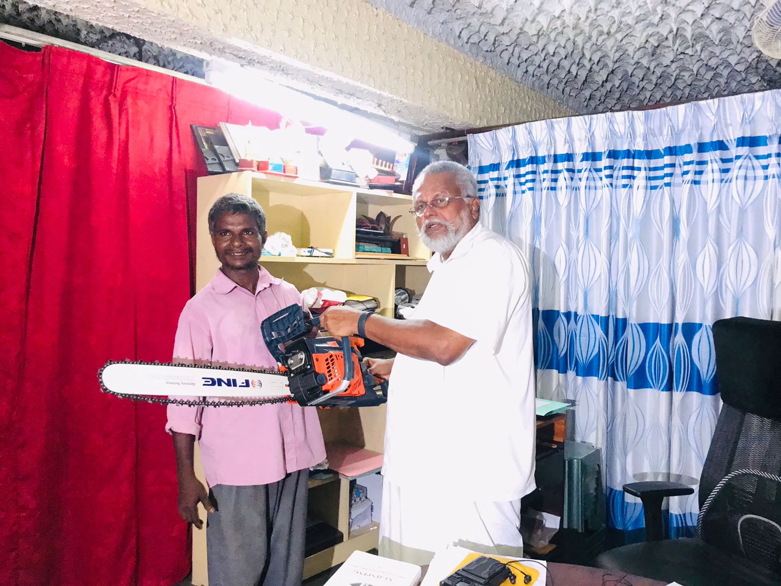 குடும்ப வருமானத்துக்கான பொருளாதாரத்தை ஈடுசெய்வதற்காக அமைச்சர் டக்ளஸ் தேவானந்தாவிடம் விடுத்திருந்த கோரிக்கைக்கு அமைய கரம்பனை சேர்ந்த பரமன் என்பவருக்கு 50 ஆயிரம் ரூபா பெறுமதியான மரம் வெட்டும் இயந்திரம் ஒன்று கொள்வனவுசெய்து இன்றையதினம்