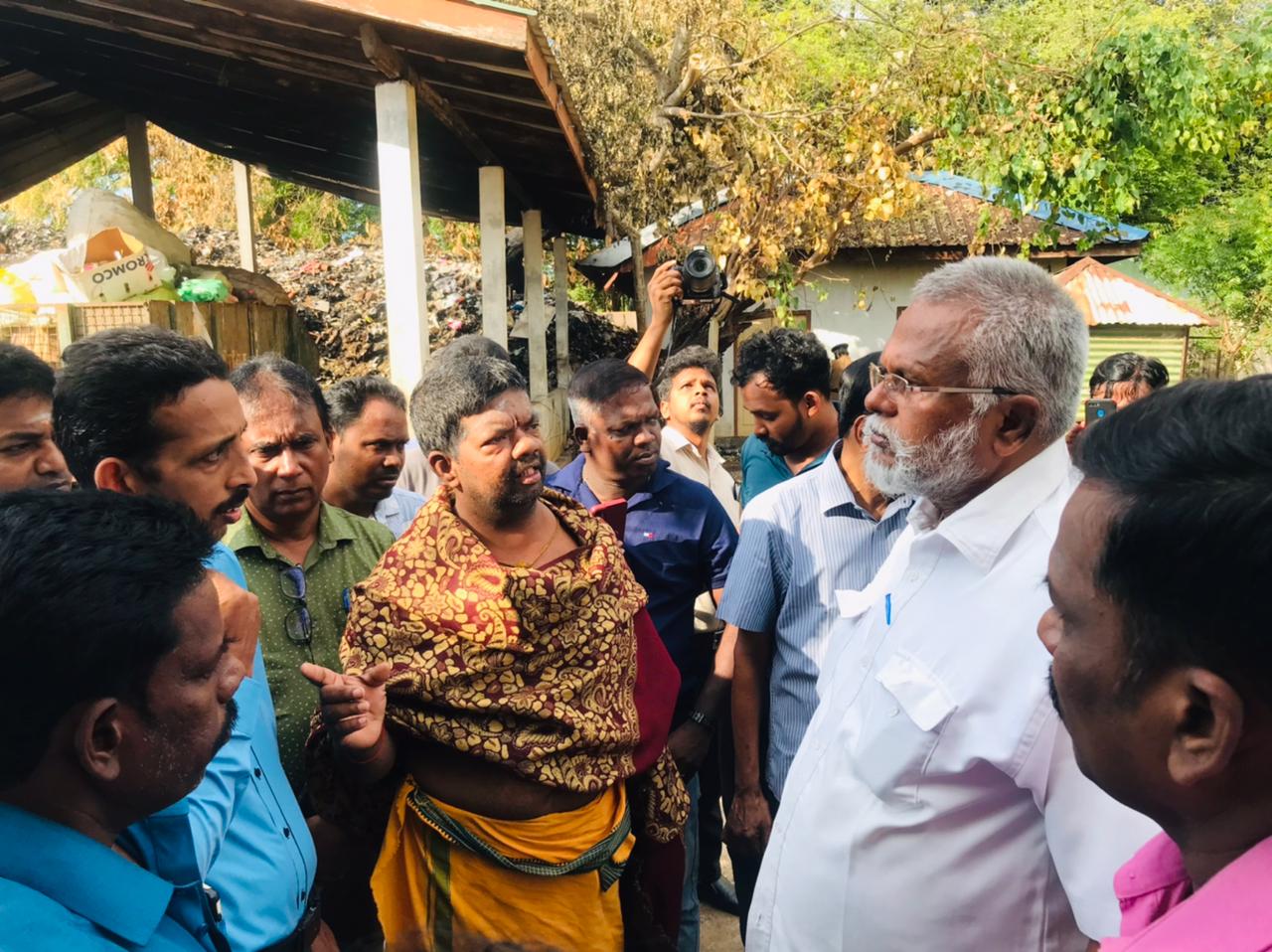 மக்களின் சுகாதார நலன்களை அச்சுறுத்திக்கொண்டிருக்கும் காரைக்கால் திண்ம கழிவு சேகரிக்கும் நிலையத்திற்கு கண்காணிப்பு விஜயம் மேற்கொண்ட அமைச்சர் டக்ளஸ் தேவானந்தா, நிலமைகள் தொடர்பில் துறைசார் அதிகாரிகளின் பிரசன்னத்துடன் ஆராய்ந்தநிற்துகொண்டார்.