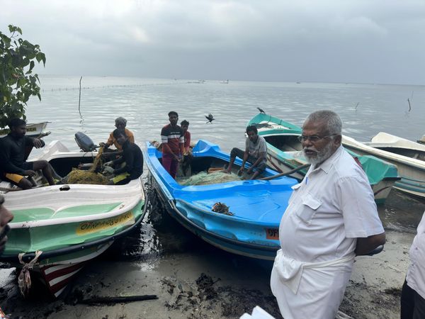 சுமார் 400 படகுகள் தரித்து நின்று தொழில் புரியும் நாச்சிக்குடா இறங்குதுறை பகுதிக்கு இன்று காலை களவிஜயம் மேற்கொண்ட கடல்தொழில் அமைச்சர் டக்ளஸ் தேவானந்தா பிரதேச கடல்தொழிலாளர்களினால் முன்வைக்கப்பட்ட கோரிக்கைகளான இறங்குதுறை புனரமைப்பு மற்றும் தொழிலாளர்கள் தாங்கியிருப்பதற்கான ஒய்வு மண்டபம் அமைக்க உத்தேசம் செய்துள்ள காணியையும் பார்வையிட்டதுடன் இறங்குதுறையில் தொழிலில் ஈடுபட்டுக்கொண்டிருந்த கடல் தொழிலாளர்களுடன் அவர்களின் தேவைகள் மற்றும் எதிர்பார்புகள் குறித்து கேட்டறிந்து கொண்டார்.