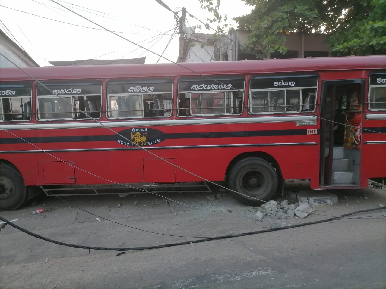 சாரதியின் தூக்கக்கலக்கத்தால் வேகக் கட்டுப்பாட்டை இழந்த பேரு வீதியை விட்டு விலகி மின் கம்பத்துடன் மோதுண்டு வீதியோரம் இருந்த கடைத் தொகுதியிலும் மோதுண்டு விபத்துக்குள்ளாகியுள்ளது.