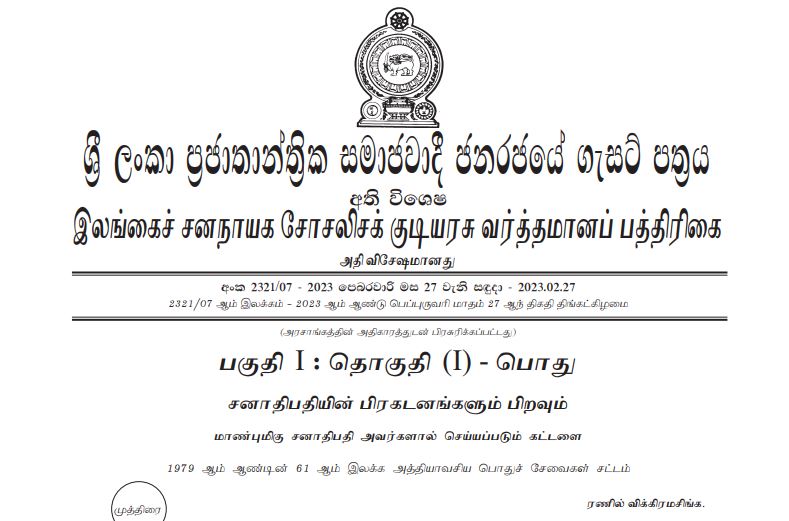 ஆகியன உடனடியாக நடைமுறைக்கு வரும் வகையில் அத்தியாவசிய சேவைகளாக பிரகடனப்படுத்தப்பட்டுள்ளமை குறிப்பிடத்தக்கது.