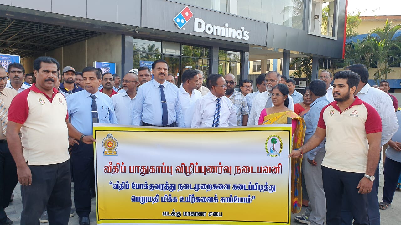 விதிப்பாதுகாப்பு விழிப்புணர்வு நிகழ்ச்சித் திட்டத்தின் ஒரு பகுதியாக இன்று (09) வியாழக்கிழமை மு.ப 8.30 மணியளவில் வேம்படிச் சந்தியிலிருந்து யாழ் போதனா வைத்தியசாலை வீதியூடாக காங்கேசந்துறை வீதி சத்திரச் சந்தி வரை வீதிப்பாதுகாப்பு விழிப்புணர்வு நடைபவணி இடம்பெற்றது.