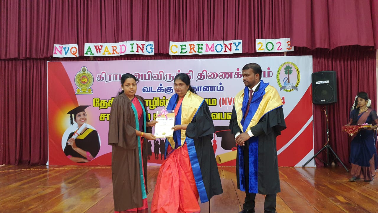 வடக்கு மாகாண கிராம அபிவிருத்தி திணைக்களத்தின் கீழ் இயங்கும் மகளிர் அபிவிருத்தி நிலையங்களில் மனைப் பொருளியலில் டிப்ளமோ கற்கைநெறி பூர்த்தி செய்து ஆடை வடிவமைப்பில் தேசிய தொழிற்தகைமையை மேற்கொண்டவர்களுக்கு சான்றிதழ் வழங்கும் வைபவம் இன்றையதினம் நடைபெற்றது.