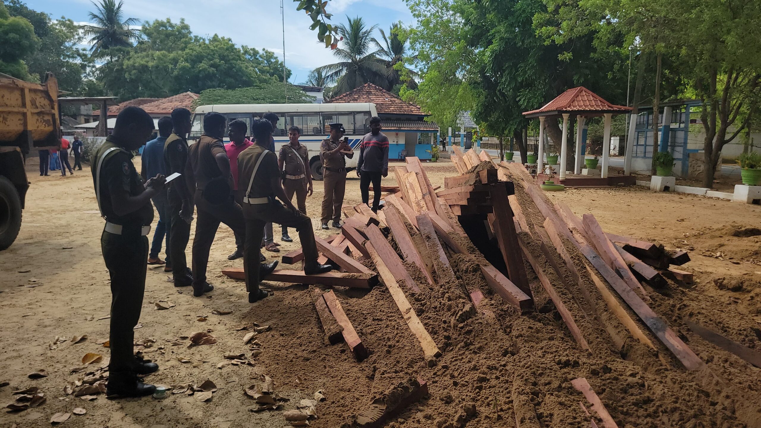 சாவகச்சேரிப் பொலிசாரால் பிடிக்கப்பட்ட சட்டவிரோதமாக டிப்பர் வாகனத்தில் கடத்தப்பட்ட பாலை மரக் குற்றிகள்!
