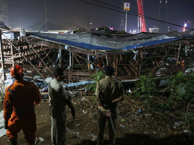 மும்பையில் வீசிய திடீர் புயல் காரணமாக விளம்பரப்படுத்தலுக்காக காட்சிப்படுத்தப்பட்டிருந்த 70க்கு 50 மீற்றர் அளவுடைய பாரிய விளம்பரப் பலகை ஒன்றே இவ்வாறு வீழ்ந்துள்ளது.