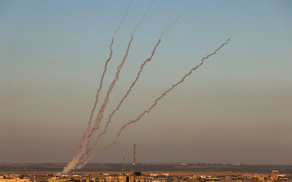 ஒரே நேரத்தில் சுமார் 12 ஏவுகணைகளை ஹமாஸ் ஏவியுள்ளது. இந்த தாக்குதலில் இஸ்ரேலை சேர்ந்த இரண்டு பேர் காயமடைந்துள்ளனர்.