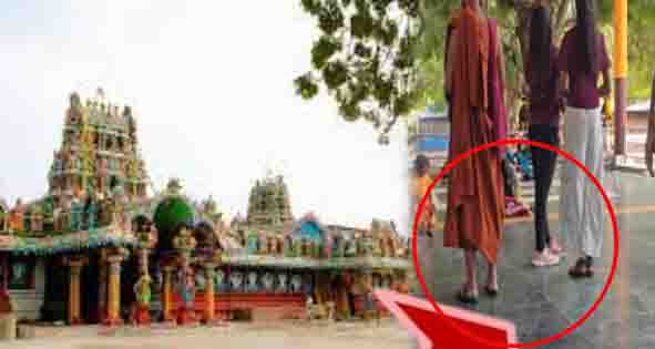 நயினை நாகபூசணி அம்மன் ஆலயத்தில் பாதணியோடு சென்ற பௌத்த துறவி – முகம்சுழிக்க வைக்கும் செயல் என சுட்டிக்காட்டு!