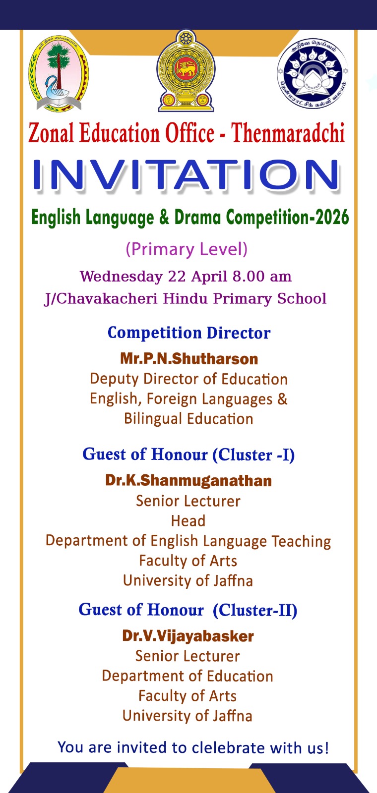 தென்மராட்சி கல்வி வலய ஆங்கில மொழி மற்றும் நாடகப் போட்டி தொடர்பான அறிவிப்பு!