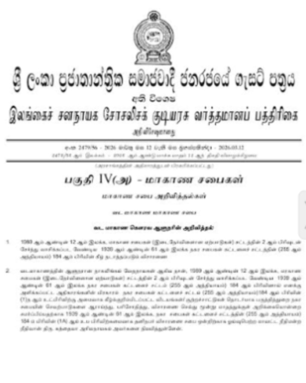 ..... பருத்தித்துறை நகர சபை தவிசாளரின் தன்னிச்சையான செயற்பாடுகள் மற்றும் நிதி முறைக்கேடுகள் தொடர்பாக முறையான விசாரணை நடத்தி அறிக்கை சமர்ப்பிக்க, ஓய்வுபெற்ற நீதிபதி ஒருவர் தலைமையில்... [ மேலும் படிக்க ]